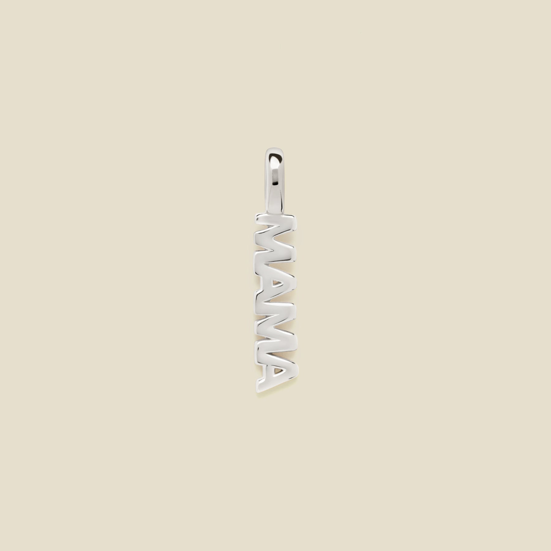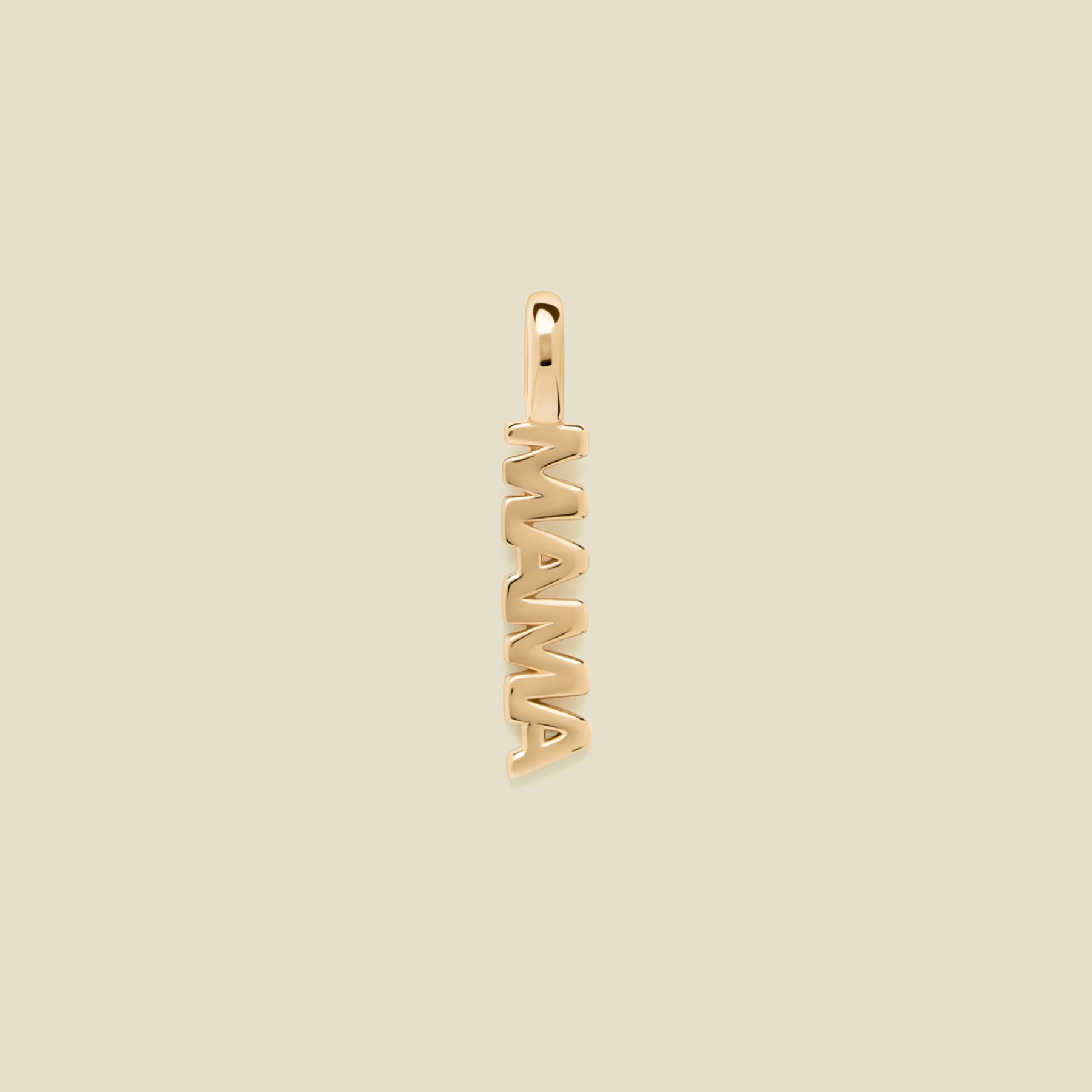 The Mama Charm features the word "mama" as a small charm made for everyday styling. Add it to your favorite necklace or charm stack for a subtle nod to motherhood.