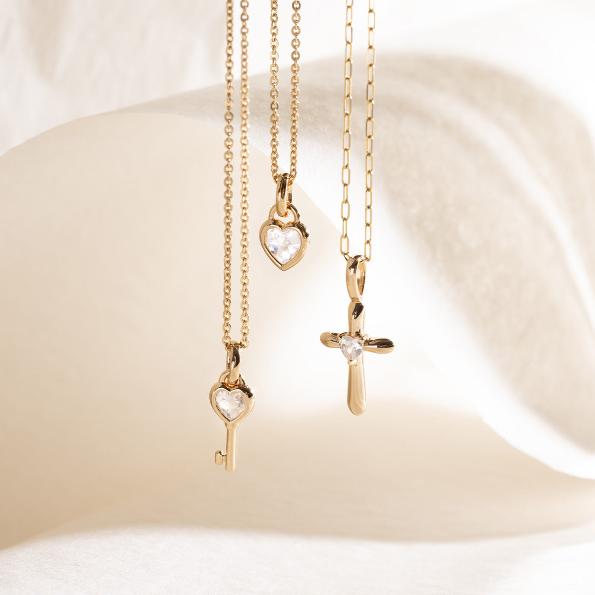This heart cross charm brings together two timeless symbols, the heart and the cross, into one meaningful expression of devotion. At the center, a CZ heart adds a gentle sparkle and softness, anchoring your jewelry stack with a reminder of faith that is grounded and steadfast.